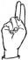 На ћирилици написано БУДИМИР МИОКОВАЦ састоји се из 15 слова [?]. Исписано ћириличном једноручном азбуком за глувонеме: